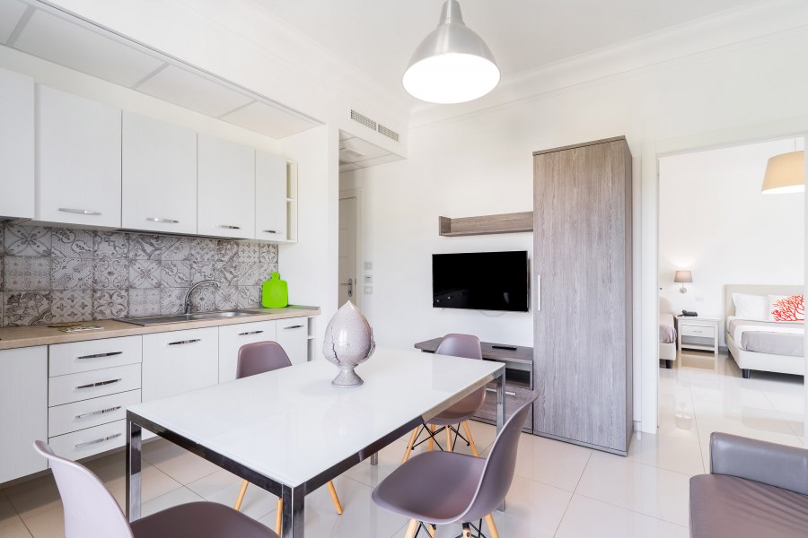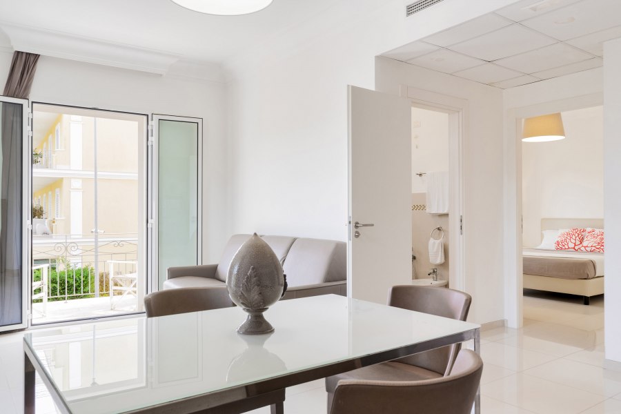 Appartamenti: Sono alloggi bilocali di 2 tipologie di grandezza: Standard (fino a 4 persone) e Executive (fino a 6 persone). Ogni appartamento dispone di tutti i comfort ed è collegato ai servizi Hotel. Standard: (fino a 4 persone) sono domotizzati ed hanno una zona giorno con 2 posti letto (i restanti sono in camera da letto). Sono dotati di angolo cottura con doppio fuoco ad induzione, frigorifero, cappa, lavello, forno combo elettrico, tavolo e sedie, utensileria varia per la cucina, prima fornitura di biancheria, balcone, aria condizionata, Tv Led, posto auto in area riservata posta alle spalle del nostro Hotel, utilizzo della piscina e della palestra (soggetti a limitazioni). Executive: (fino a 6 persone) sono domotizzati ed hanno una zona giorno con 2 posti letto (i restanti sono in camera da letto). Sono dotati di angolo cottura con doppio fuoco ad induzione, frigorifero, cappa, lavello, forno combo elettrico, tavolo e sedie, utensileria varia per la cucina, prima fornitura di biancheria, balcone, aria condizionata, Tv Led, posto auto in area riservata posta alle spalle del nostro Hotel, utilizzo della piscina e della palestra (soggetti a limitazioni).
