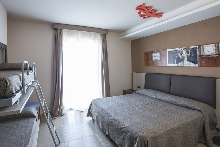 40 camere Superior composte da letto king size ed un sofà bed singolo, per le camere triple, oppure un comodo letto a castello ideale per famiglie (occupazione massima 2 adulti + 2 bambini fino a 12 anni), per le camere quadruple.