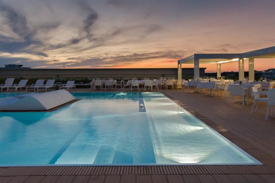 a pochi metri dall’omonima spiaggia, è una struttura creata con linee di design e materiali di pregio, in ogni suo aspetto coniuga modernità e tradizione, sviluppandosi in linea orizzontale così da inserirsi nel territorio nel pieno rispetto delle forme.