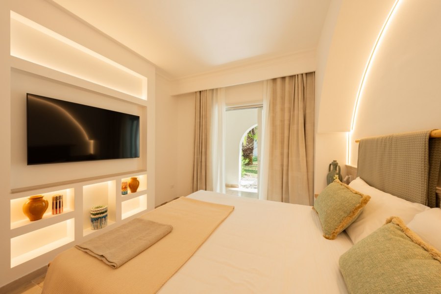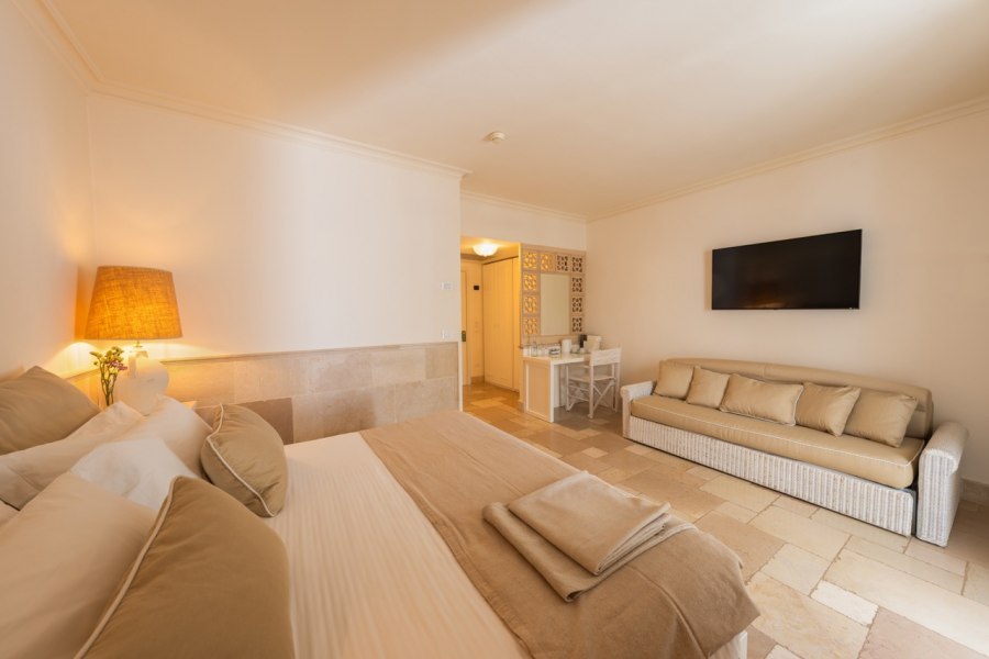 Premium Family: pensate per soddisfare le esigenze di tutta la famiglia, offrono ambienti luminosi e tutti i comfort necessari. Ogni camera dispone di un balcone o di un patio privato e di due spazi comunicanti, ciascuno con il proprio bagno e accesso indipendente, per garantire privacy e comodità. Alcune camere offrono anche vista sul giardino. Include parcheggio e servizio lettini in spiaggia (su disponibilità, dalla quinta fila in poi).