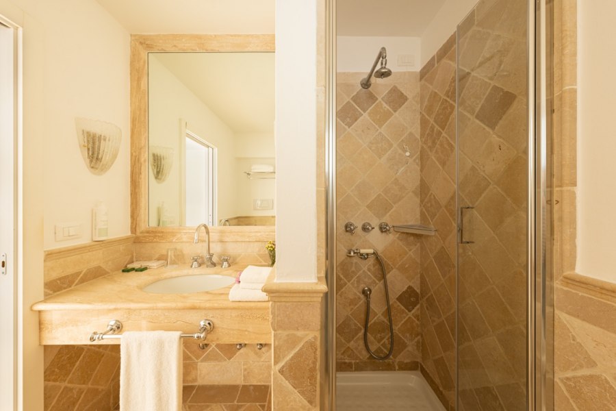 Rosa Marina Suite: una suite ispirata alla storia e all’identità dell’hotel, dove il fascino d’altri tempi incontra il comfort contemporaneo. Dispone di un letto matrimoniale, due bagni (uno con vasca idromassaggio, l’altro con doccia) e un ampio balcone privato affacciato sui giardini. La zona living include un angolo cottura con frigorifero, lavello e tavolo da pranzo, perfetto per gustare i propri piatti preferiti. Gli ospiti della suite hanno inoltre a disposizione una postazione spiaggia (ombrellone + 2 lettini) in terza e quarta fila. Un rifugio intimo per rilassarsi, rigenerarsi e vivere nuove esperienze tra le bellezze del paesaggio circostante.? Parcheggio incluso.
