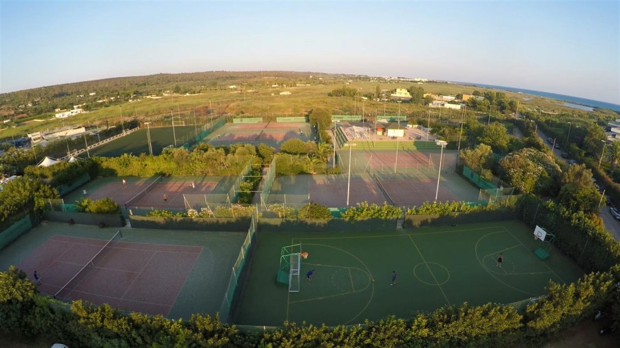 La quota comprende: 7 campi da tennis con suolo di sabbia al quarzo di cui 3 con illuminazione, 2 campi da Padel con illuminazione, calcetto in erba con illuminazione, centro benessere con bar salutistico e sauna, Internet, palestra, tiro con l'arco, aerobica, Aqua Fit (acquagym), pallavolo, pallacanestro, ping-pong, bocce, beach-volley; uso di windsurf, catamarano e vela se in possesso del patentino o certificato di comprovata conoscenza, NITE CLUB (discoteca), pianobar in pineta, animazione.