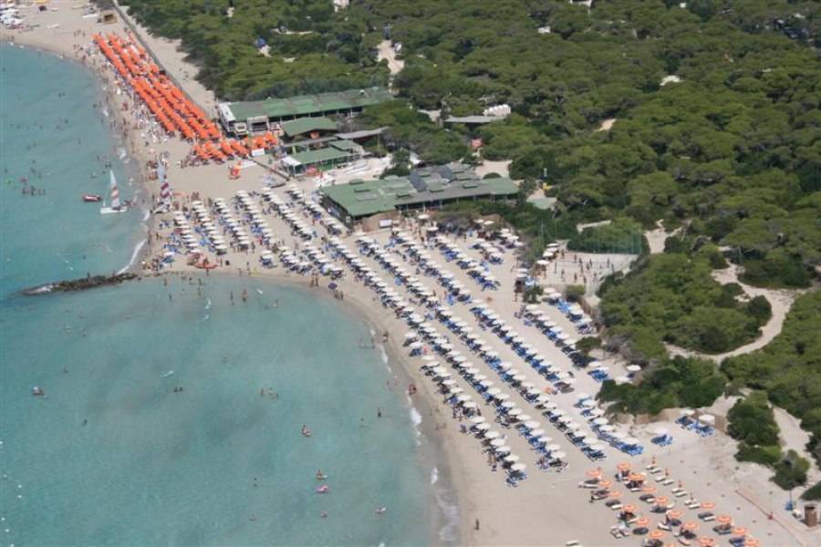Riservata, di sabbia e con fondale digradante, si raggiunge con un percorso pedonale attraverso la pineta; zona d'ombra e lettini compresi nel prezzo, la struttura fornisce i teli mare ad uso gratuito.