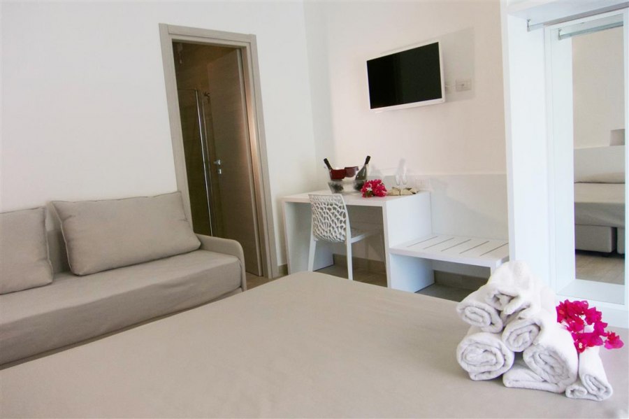 242 camere divise in Family Comfort doppio ambienteal 1° piano, composta da una camera con letto matrimoniale e cameretta con 2 letti singoli, aria condizionata, Tv LCD, cassaforte, frigobar; quelle al piano terra dispongono di un patio esterno ed offrono la comodità di un’ulteriore doccia esterna. Classic tutte ubicate a piano terra, dotate di aria condizionata, Tv LCD, cassaforte, frigobar. La verandina offre la comodità di un’ulteriore doccia esterna