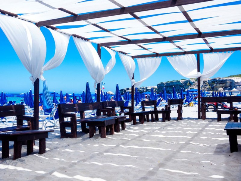 a soli 800 metri troviamo l'esclusivo lido privato di sabbia finissima “I Caraibi del Salento” situato di fronte i famosi faraglioni di Torre dell'Orso denominati “Le due sorelle”, location più suggestiva della spiaggia della costa adriatica. Dispone di ombrelloni, lettini sdraio, sedia regista, bar, servizi per portatori handicap (Job service), ed è raggiungibile tranquillamente a piedi o con servizio di Trenino incluso.