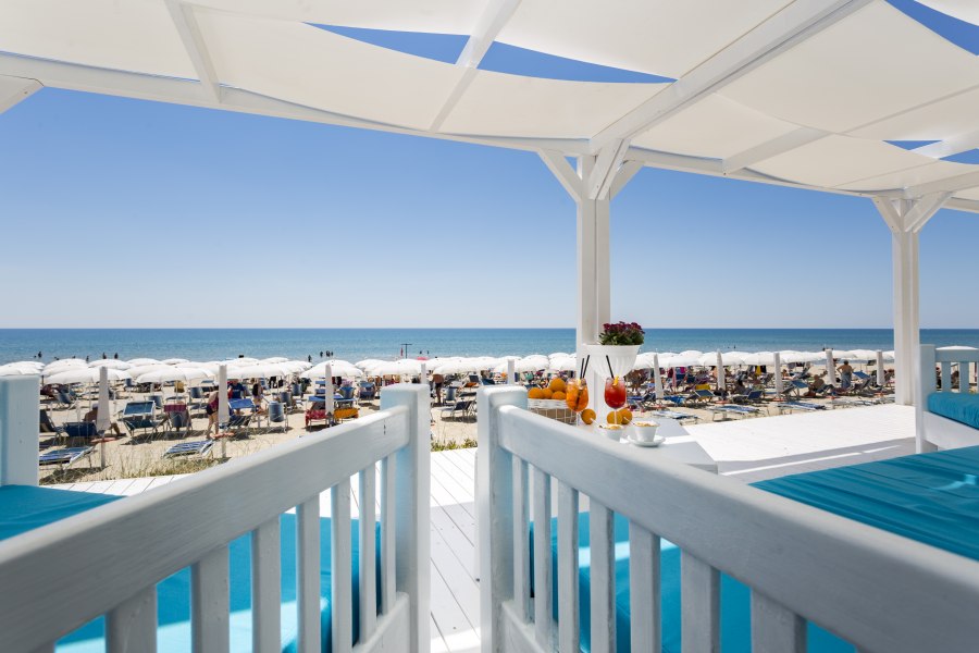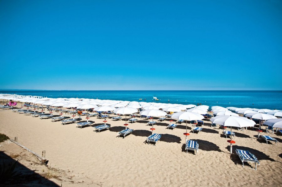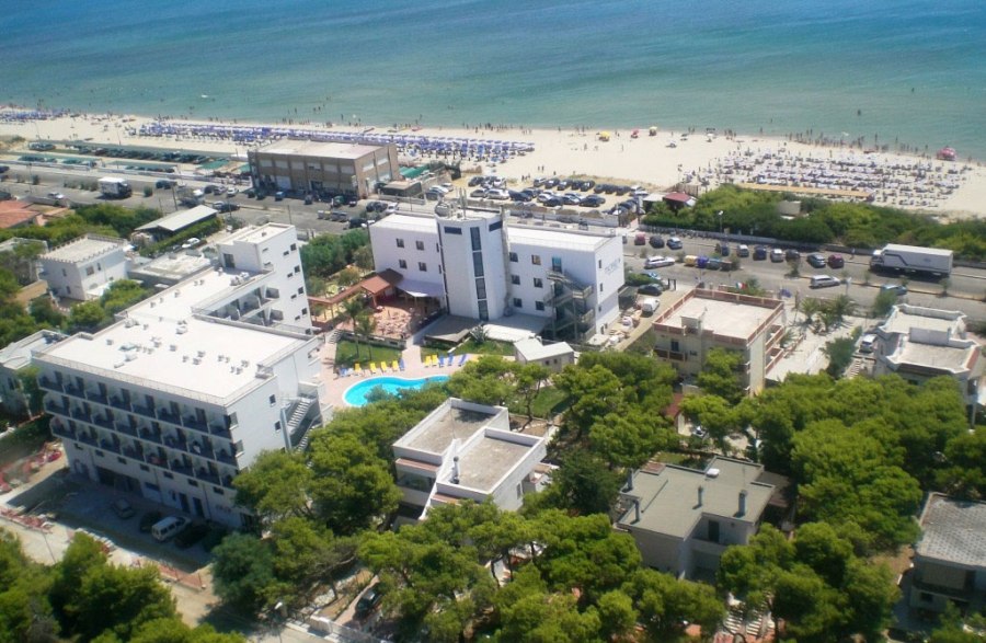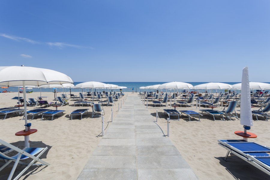 Di fronte all’hotel, a soli 20 metri, con attraversamento del lungomare, ampia e lunga spiaggia di sabbia fine con fondale leggermente digradante, premiato, per la quinta volta consecutiva con la Bandiera Blu. Lido privato e attrezzato con sdraio, lettini e ombrelloni, snack bar e servizi immersi nel verde della suggestiva macchia mediterranea tra cui una zona dedicata al miniclub. Il lido è dotato anche di sedia Job per la clientela disabile. Disponibilità di teli mare (su richiesta e a pagamento).