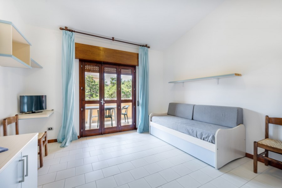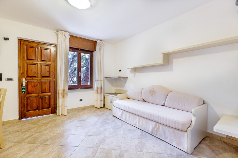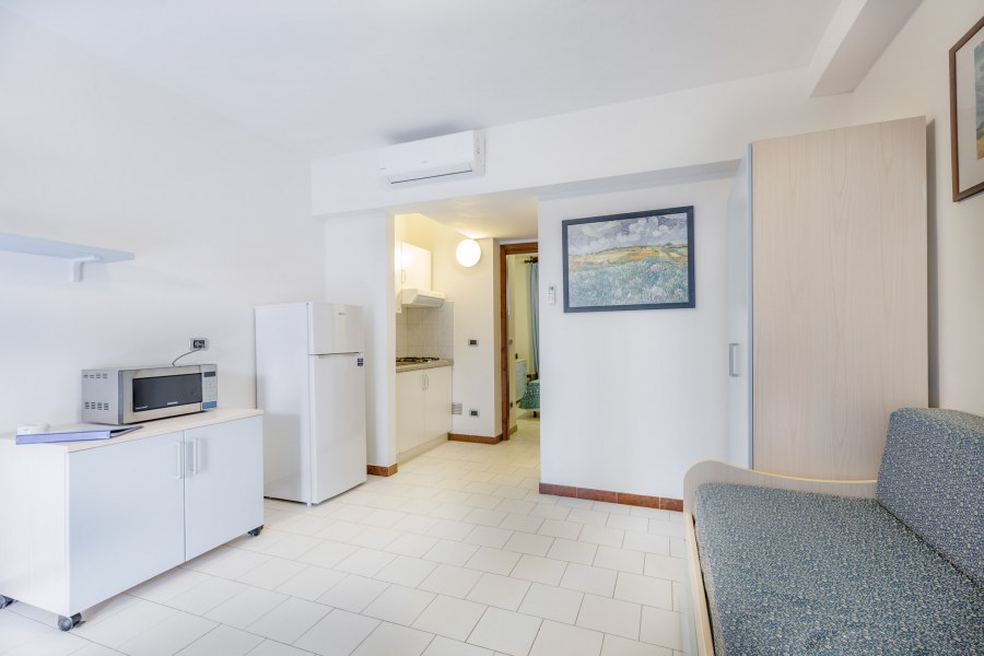 Bilocale “Silver” 3/4 posti letto (c.a 30 mq), costituito da camera da letto, bagno con doccia, soggiorno-zona pranzo con divano letto, angolo cottura con frigorifero/congelatore (lt. 240) a doppia porta, tv color (No Sat), aria condizionata, patio e balcone, dotazione di stoviglie per la cucina, sedie e tavolo per interno o esterno.