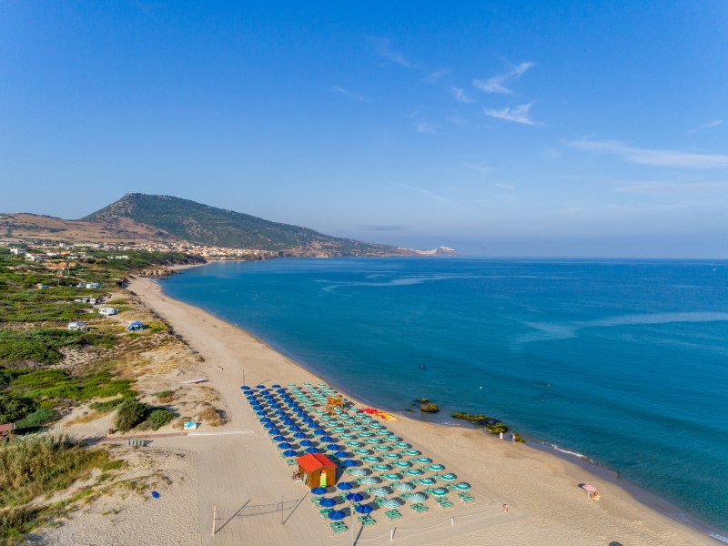 Il complesso, dispone di una porzione di spiaggia privata attrezzata con ombrelloni e lettini, raggiungibile dall'interno del villaggio attraverso una stradina interna;