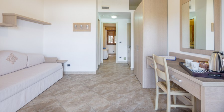 Suite Classic (da 2 a 4 posti letto, di c.a 30 mq), disposte internamente come le superior ma con arredi semplici e funzionali e non dotate di cassaforte, telefono e phon.