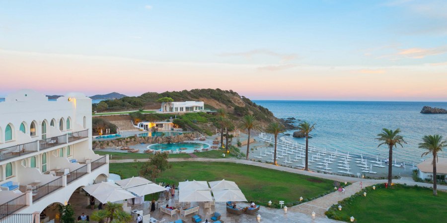 A pochi passi dal villaggio di Villasimius si trova il Falkensteiner Resort Capo Boi (10 minuti in auto), immerso in un parco mediterraneo tra colline granitiche e spiagge di sabbia bianca, direttamente situato in una baia privata di sabbia, gli ospiti possono godere della splendida vista sulla baia di Capo Carbonara che fa parte dell’ affascinante parco naturale marino.
