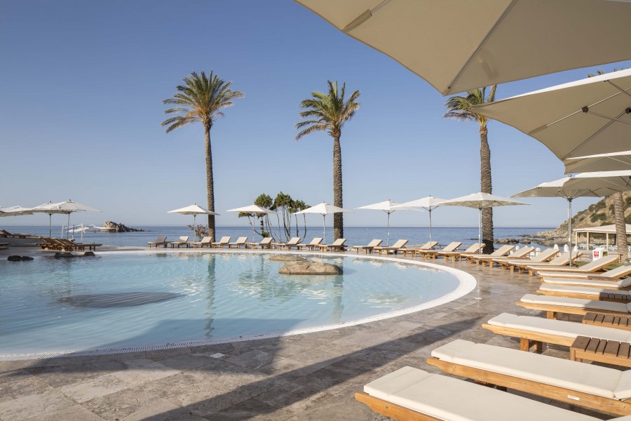 2 piscine di cui 1 Infinity pool ed 1 per bambini. Area Benessere: Acquapura SPA, piscina riscaldata con vista mare, sauna finlandese e bio, bagno turco, area relax, trattamenti estetici, parrucchiere su richiesta. Area fitness attrezzata.