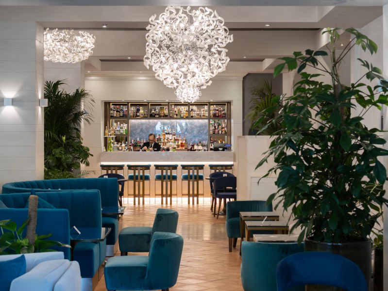 Hall, reception, Wi-Fi, diversi bar, gelateria, pasticceria, tre piscine presso la zona Oasis, nel centro del resort, di cui una con zona per bambini. Piscina Baia delle Palme, di acqua dolce, divisa in 4 parti: una per l’allenamento con le corsie, una con gli acqua scivoli, una con il parco acquatico e una per il relax. Piscina di nuova realizzazione