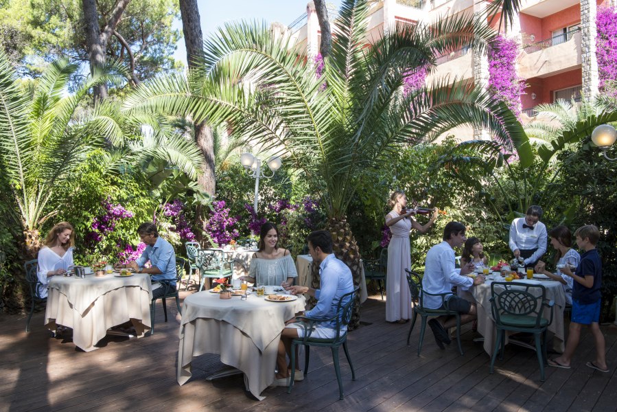102 camere tra, Superior Terrace al primo piano con balcone vista giardino e Deluxe Family completamente rinnovate, al piano terra con letto matrimoniale o letti separati, alcune hanno angolo separato con divano letto e patio e. Camere comunicanti completamente rinnovate.