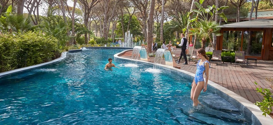 PINETA HOTEL RESORT: autentica oasi di pace, immerso tra pini ed oleandri, si integra perfettamente con l’atmosfera suggestiva del giardino. Si compone di tre corpi distribuiti su due livelli e disposti a ferro di cavallo. È ubicato in prossimità del mare e dell’Acquaforte Thalasso SPA. Nuova piscina in stile laguna.