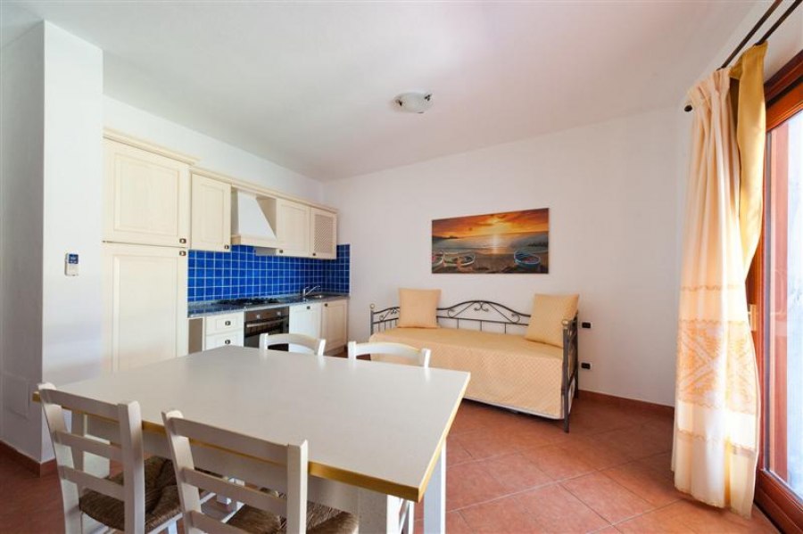 70 appartamenti disposti a piano terra con patio o primo piano con veranda coperta alcuni con vista mare sullo stupendo Golfo di Marinella sono dotati di TV LCD SAT, lavatrice, lavastoviglie, aria condizionata (inclusa nelle quote), camere sempre con letti bassi, tavolo e sedie per uso esterno.