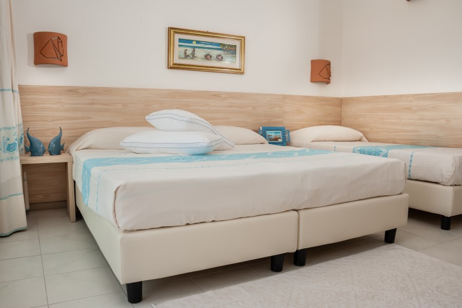 Si suddividono nelle seguenti tipologie: Comfort 2/3, composte da unico ambiente con letto matrimoniale e un letto singolo e bagno con doccia. Alcune dotate di spazio esterno (balcone o patio) e alcune disponibili con vista mare (con supplemento). Family Room 2/4, composte da camera matrimoniale e cameretta con due letti, bagno con doccia e spazio esterno. Sono tutte al piano terra e sono dotate di patio o terrazzo.