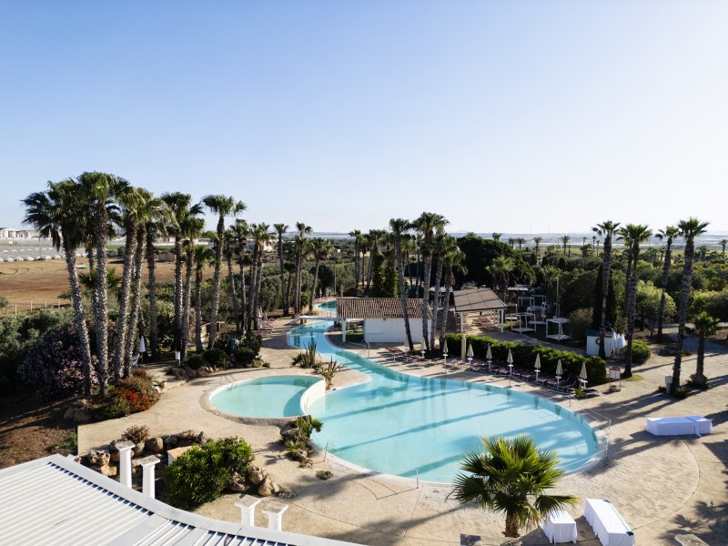 Resort immerso nella tranquillità della natura circostante, si compone di un corpo centrale che richiama la bellezza e le forme di un antico baglio, articolato su tre livelli.