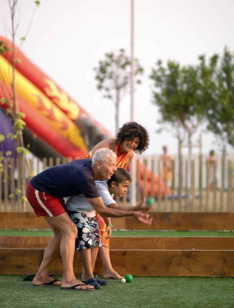 Campo da tennis e campi polivalenti calcetto/tennis con illuminazione notturna, beach tennis e beach volley, campo da padel, ping-pong, tiro con l’arco, campo bocce.