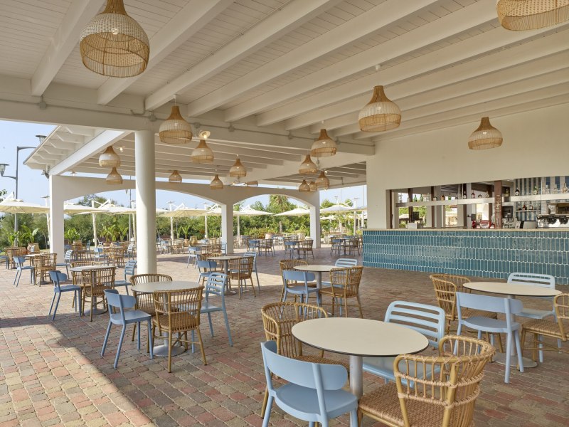 Il resort ha un ristorante centrale con sale climatizzate, il Patio, con area esterna ombreggiata. Inoltre nel Resort vi sono i seguenti ristoranti: ristorante gourmet Il Gusto, con servizio al tavolo (dall’08/06 al 19/09), il ristorante a buffet Le Onde (dall’08/06 al 5/09).