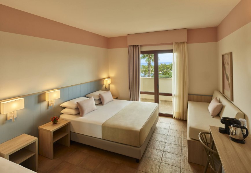 Premium Pool Area camere situate in zona piscina con possibilità di ospitare fino a 3 persone, con possibilità di aggiungere un quarto letto in divano letto singolo; se si viaggia con due bambini tra 0 e 3 anni non compiuti, accoglieremo i tuoi piccoli con 1 culla di tipo pieghevole e 1 letto singolo con spondine (in questo caso lo spazio sarà un po' più raccolto). Oltre ai comfort delle camere Classic, dispongono di bollitore con tè e tisane e macchina espresso, E' possibile scegliere tra Premium Garden al piano terra con giardino e Premium Balcony al 1° o 2° piano con balconcino.