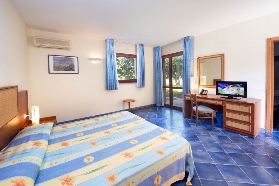 Le 410 camere distribuite tra corpo centrale e vari edifici a 2 piani sono situate nelle due aree del resort, Anapo e Ciane. Tutte le camere dispongono di asciugacapelli, aria condizionata autonoma, telefono, wi-fi, tv satellitare, cassaforte, mini-frigo (servizio rifornimento a richiesta, bevande a pagamento), terrazzo o patio attrezzato.