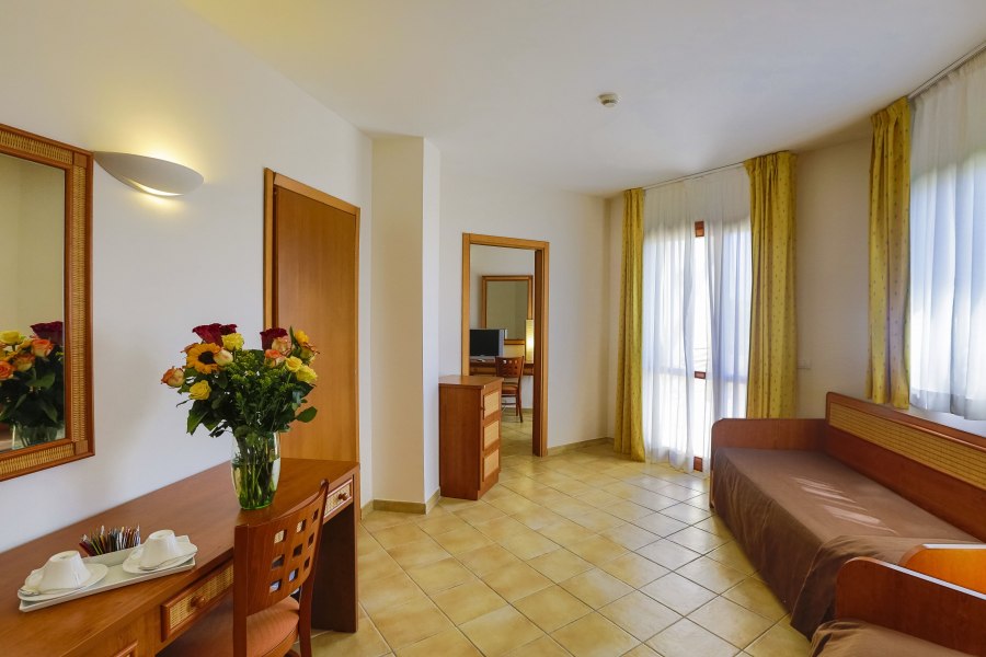 Comfort 23-34 m2 Doppia (max 2 pax + culla) Triple (min. 3 – max. 3 pax + culla) Quadruple (max 4 pax + culla) Le Camere Comfort sono completamente rinnovate negli arredi dai colori tenui e nel bagno. Le camere quadruple sono costituite da 1 soggiorno con 2 letti singoli, 1 camera doppia e 1 bagno (alcune con vasca). Family 34 m2 (min. 3 pax, max 4 adulti + culla) Le Family , molto spaziose, sono costituite da 2 ambienti separati da una porta, 1 soggiorno con 2 letti singoli e 1 camera doppia o matrimoniale e 1 bagno (alcune con con vasca).