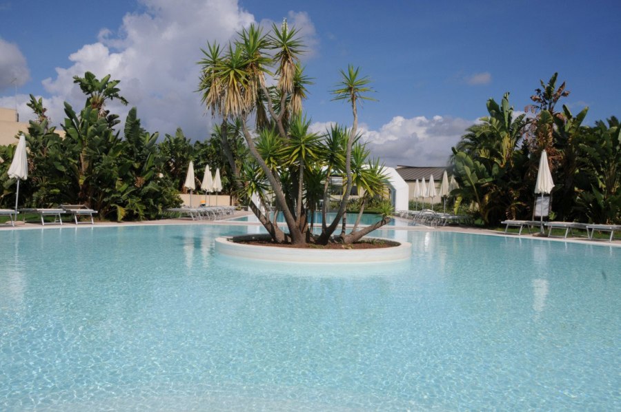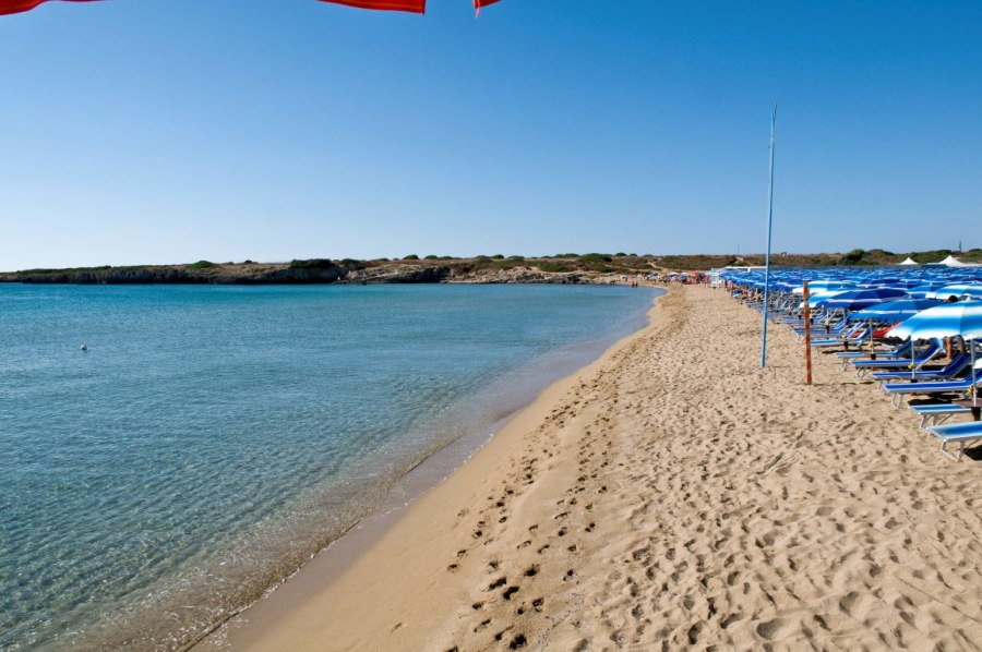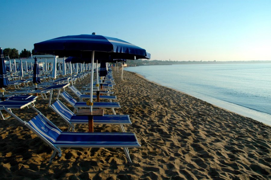 Il resort dista da 250 mt a 600 mt dal primo punto di mare (circa 800m dalla spiaggia). I 4 km di costa, che costituiscono il confine sul mare del villaggio, sono caratterizzati da gradevoli piattaforme in legno riservate ai clienti (disponibili da metà Maggio a metà Settembre) con gradini per la discesa in mare, attrezzate con ombrelloni e lettini, fino ad esaurimento. La splendida spiaggia di Arenella, di cui un’area è riservata al resort, è attrezzata di ombrelloni e lettini fino ad esaurimento (1 ombrellone e 2 lettini per camera) a partire dalla quarta fila);(1 ombrellone e 2 lettini per camera, la totalità delle postazioni soddisfa il numero delle camere del resort soltanto includendo anche le postazioni sulle piattaforme e presso le piscine); il servizio spiaggia è attivo dal 01/05 al 30/09 dalle ore 09.00 alle ore 19.00. Il mare è raggiungibile con una passeggiata attraversando un’oasi di verde naturale oppure con un servizio navetta gratuito con un caratteristico trenino dalle ore 9.00 alle 19.00 (disponibile dal 01/05). È disponibile un’altra piccola cala di sabbia e ciottoli, che ospita inoltre anche la base nautica. Teli mare disponibili su cauzione di € 10 (cambio a pagamento, € 2).