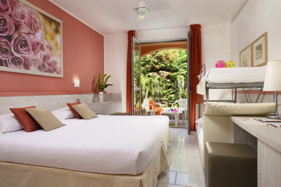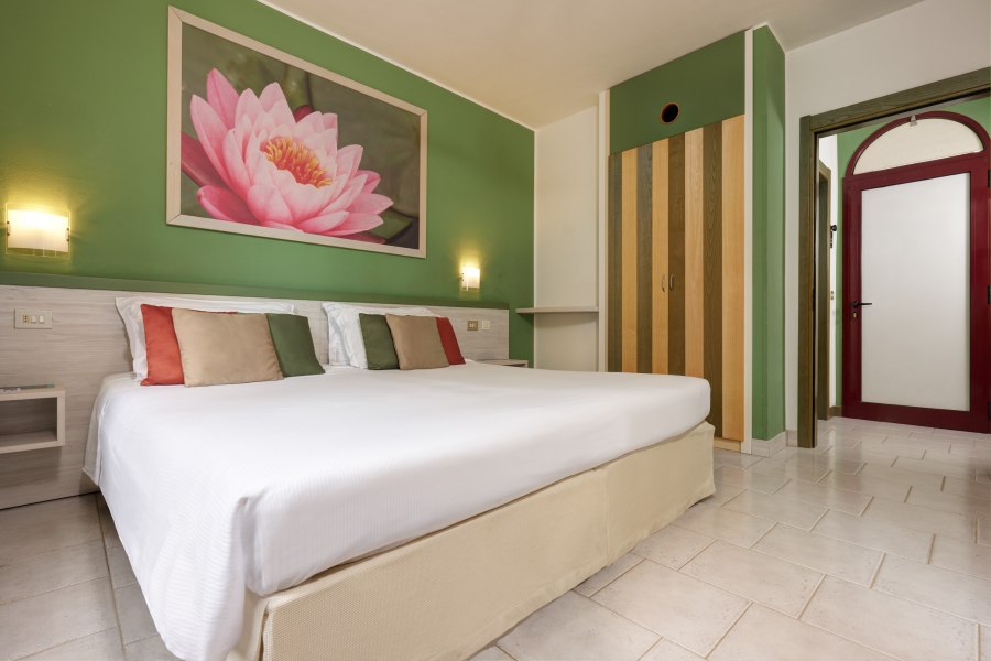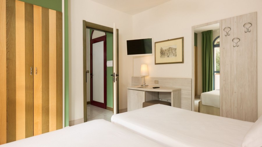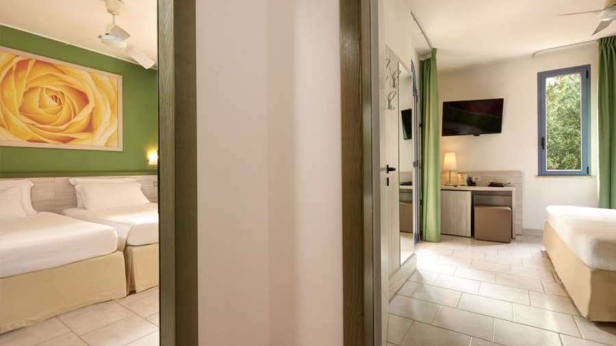 Family Room Classic, 4 posti letto, ideali per famiglie che desiderano comfort e funzionalità. Sono composte da una camera matrimoniale, una camera con due letti singoli e un unico bagno. Situate prevalentemente al primo o secondo piano.