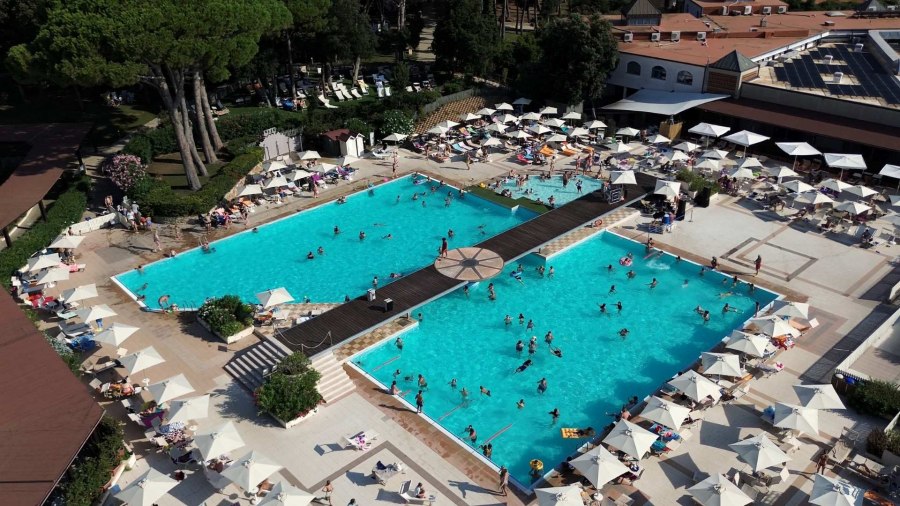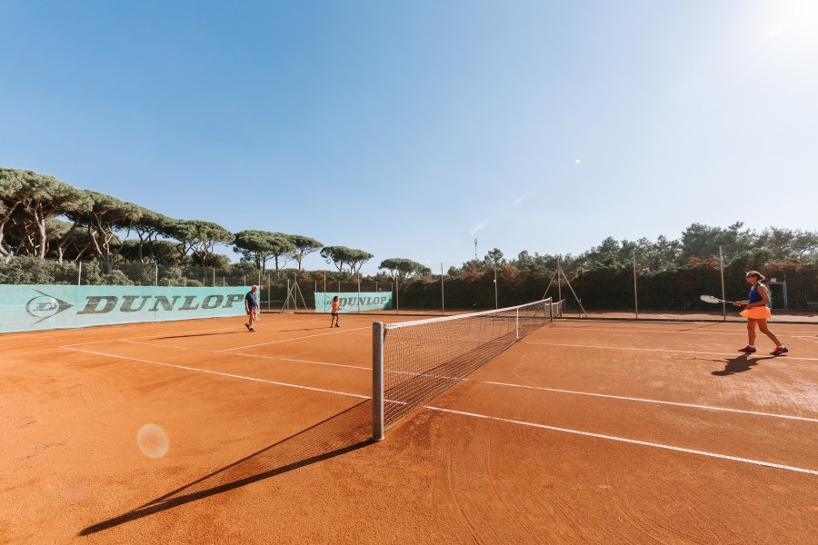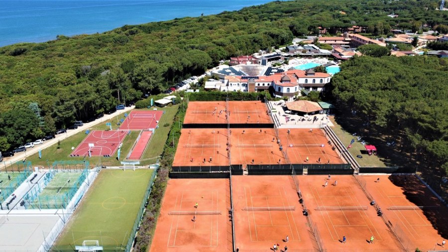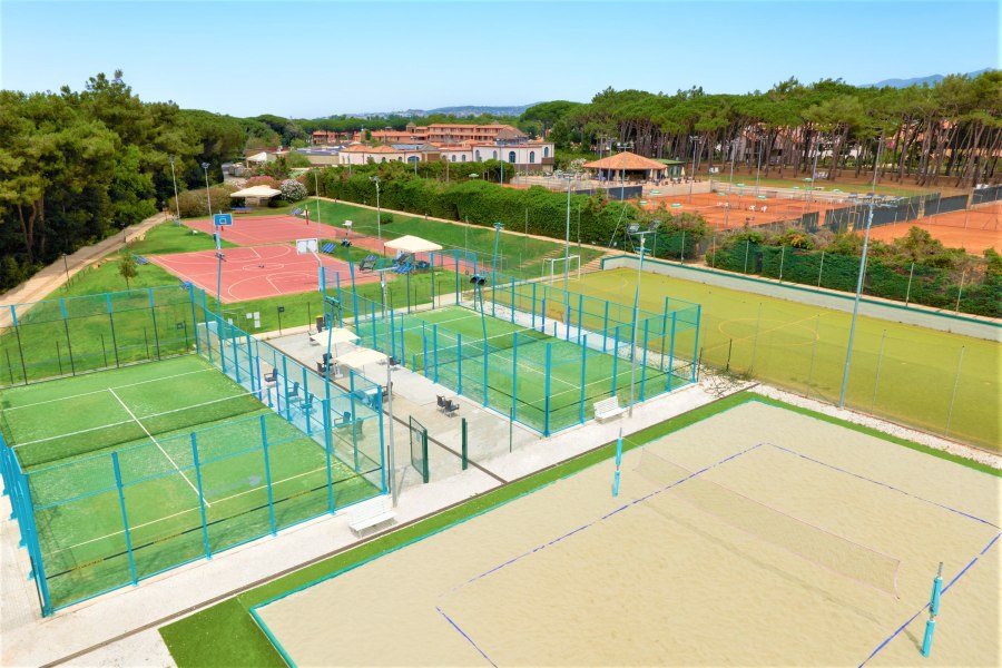 2 piscine, di cui una per i bambini, 12 campi da tennis in terra battuta, 2 campi da padel, 2 campi da calcetto con illuminazione, basket, pallavolo, beach volley e beach tennis, bocce, ping pong, palestra, percorso running di un miglio, tiro con l’arco. In spiaggia: canoe singole e doppie, tavole da sup, pedalò, surf.